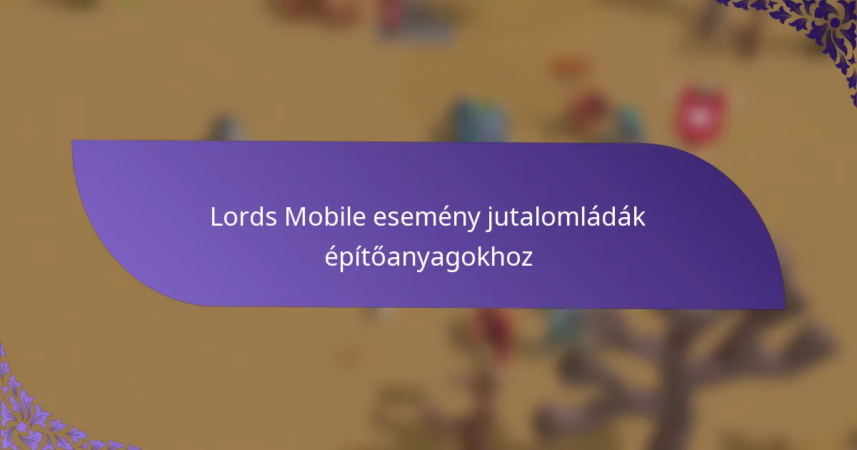 A Lords Mobile-ban számos esemény kínál jutalomládákat, amelyek értékes építőanyagokat tartalmaznak. Ezekben az eseményekben való részvétel jelentősen javíthatja az erőforrás-gyűjtést és a játékmeneti élményt.