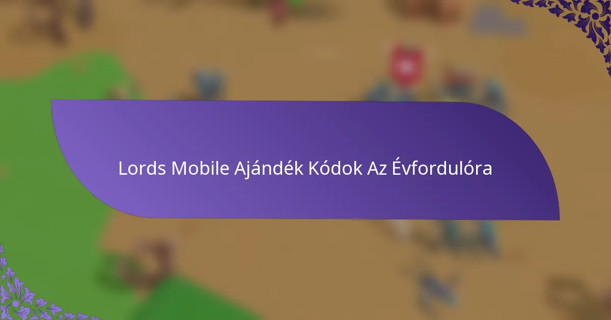 Az évfordulóra vonatkozó aktív Lords Mobile ajándék kódok értékes jutalmakat biztosítanak a játékosok számára, amelyek fokozzák a játékélményt. Ezek a kódok erőforrásokat, tárgyakat és bónuszokat kínálhatnak, amelyek különösen előnyösek az évfordulós esemény alatt.