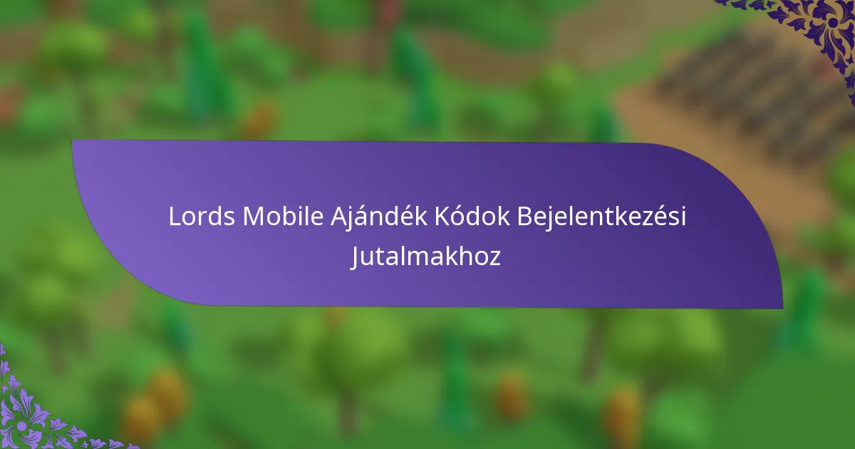 A Lords Mobile ajándék kódok különleges alfanumerikus kódok, amelyeket a játékosok különböző játékon belüli jutalmakért válthatnak be. Ezek a kódok javítják a játékélményt, mivel értékes tárgyakat és erőforrásokat biztosítanak a játékosok számára, anélkül, hogy további vásárlásokra lenne szükség.