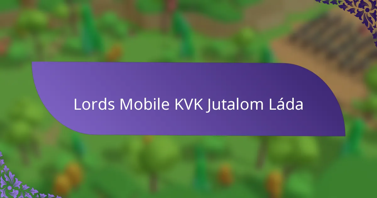 A Lords Mobile KVK Jutalomládák különleges tárgyak, amelyeket a Királyságok közötti (KVK) események során szereznek. Ezek a ládák különféle jutalmakat tartalmaznak, amelyek javítják a játékmenetet, és értékes erőforrásokat és tárgyakat biztosítanak a játékosok számára.